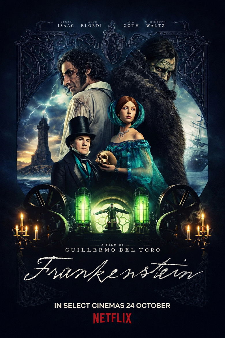 This has got be Oscar Isaac at his best yet, depicting the obsessive scientist hell-bent on proving that he could use science to defeat death itself. He is the son of an acclaimed but rather brutal physician (Charles Dance) and is galvanised further to his chosen path by the sudden death of his mother. His theories disgust civilised society but the wealthy “Harlander” (Christophe Waltz) agrees to fund his experiments to what he hopes will be their logical conclusion. Now secreted away in his remote castle, and quite literally cannibalising spare parts from graveyards and mortuaries alike, he awaits that lightning storm that could just bring Jacob Elordi to life. The problem for the Baron is that he is disappointed with his creation and has no concept that it looks to him very much as a father. Imprisoned in the basement, the “monster” is befriended by “Elizabeth” (Mia Goth) who sympathises with it’s ghastly predicament - but before she can help a great conflagration sets in train a cat and mouse struggle between created and creator that takes them to the depths of the frozen wastes where an exploration ship is trapped in thick pack ice - where our story both starts and concludes. Isaac really does own his megalomaniac obsessive role here and the whole creative effort put into the production design turns this from simple science fiction into a multi-textured love story with it’s fair share of moral dilemmas, hate and loathing too. Elordi? Well he does bring back memories of Christopher Lee in this role, only here is is also rewarded with an extra degree of articulation and towards the end, more of a conscience and even an amount of personality - and he manages to portray his character’s frustrated and confused conflict well, if fairly sparingly. Whilst there are common points of reference with earlier iterations of this story, this enlivens it in a far more characterful and in many ways more justifiable way, and I thought it flew by. Big screen if you can, though Netflix does seem to have limited it’s cinema release quite a bit, because it might lose much of it’s stylish and gothic menace as well as it’s emotionally-charged nuance on a small screen.