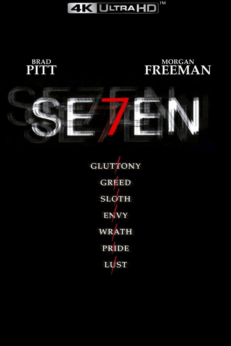 Two homicide detectives are on a desperate hunt for a serial killer whose crimes are based on the "seven deadly sins" in this dark and haunting film that takes viewers from the tortured remains of one victim to the next. The seasoned Det. Somerset researches each sin in an effort to get inside the killer's mind, while his novice partner, Mills, scoffs at his efforts to unravel the case.